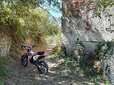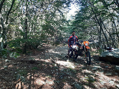 Incluso sale una señora y me dice, muy amable, que puedo pasar si quiero. Me advierte de que es complicado y me pregunta si estoy habituado a montar en moto :) pero no me atrevo, está muy cerrado y hace bastante calor, a ver si voy a pegar fuego y la lío parda.