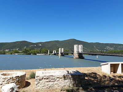Cruzo el Ródano justo un poco más adelante, al estilo Aníbal, ya que tengo intención de cruzar los Alpes montado en una bestia, también en un mes de Agosto, pero 2.237 años después.