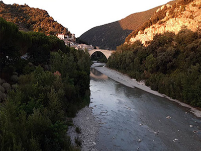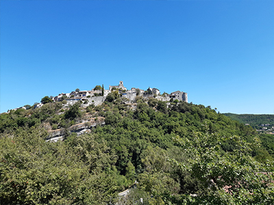 Media vuelta y sigo por el valle hasta un pueblo recortado en el horionte que se llama Saint Thomé. Sigo adelante y veo el puente romano de Viviers, en pie desde el siglo II-III que cruza el río Escoutay.