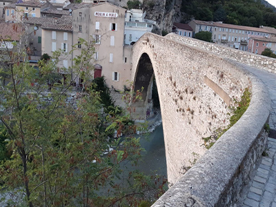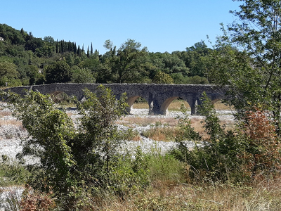 Y luego me doy un paseo por el pueblo a la vera del río Eygues, para ver el puente de cerca, pero el sindicato de mosquitos franceses está avisado de mi llegada y me atacan con todo lo que tienen. Me rindo, no tengo el valor de Aníbal, y me refugio en casa para que no me piquen más.
