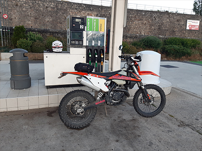 Me levanto sobre las 5:00, y después de desayunar y preparme todo voy en dirección Langogne, donde relleno gasolina. Son las 7:15 ya estoy listo para ir hacia Pradons.